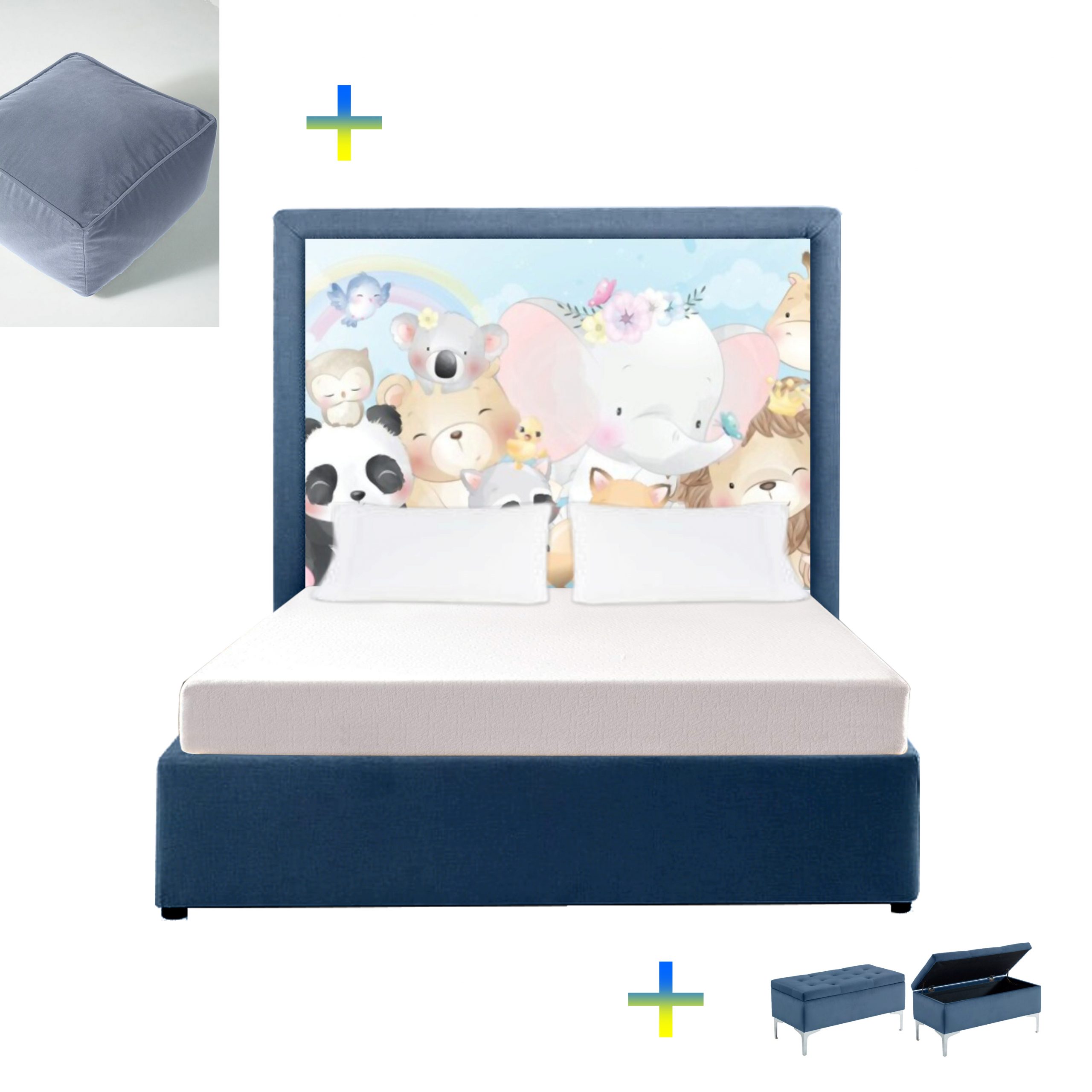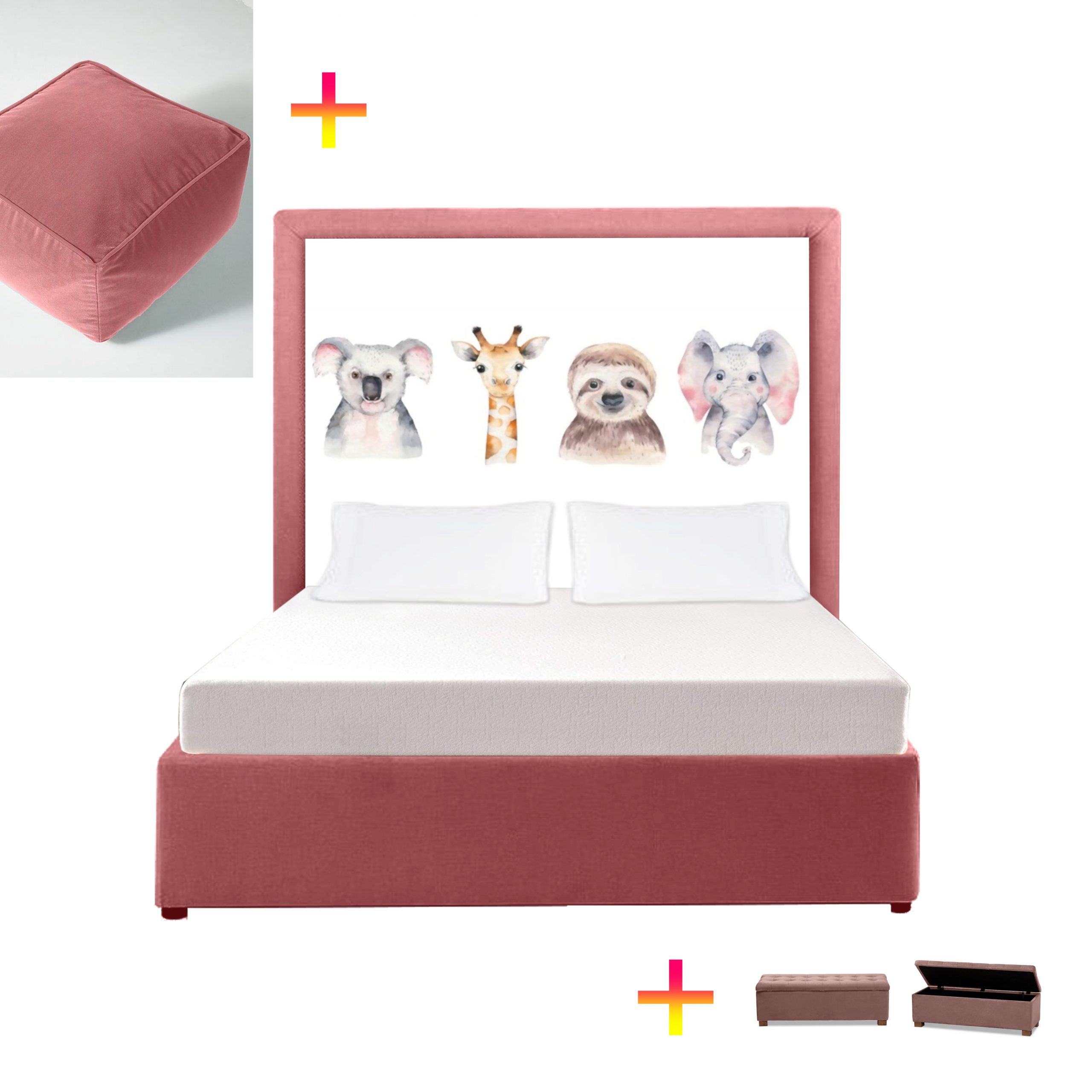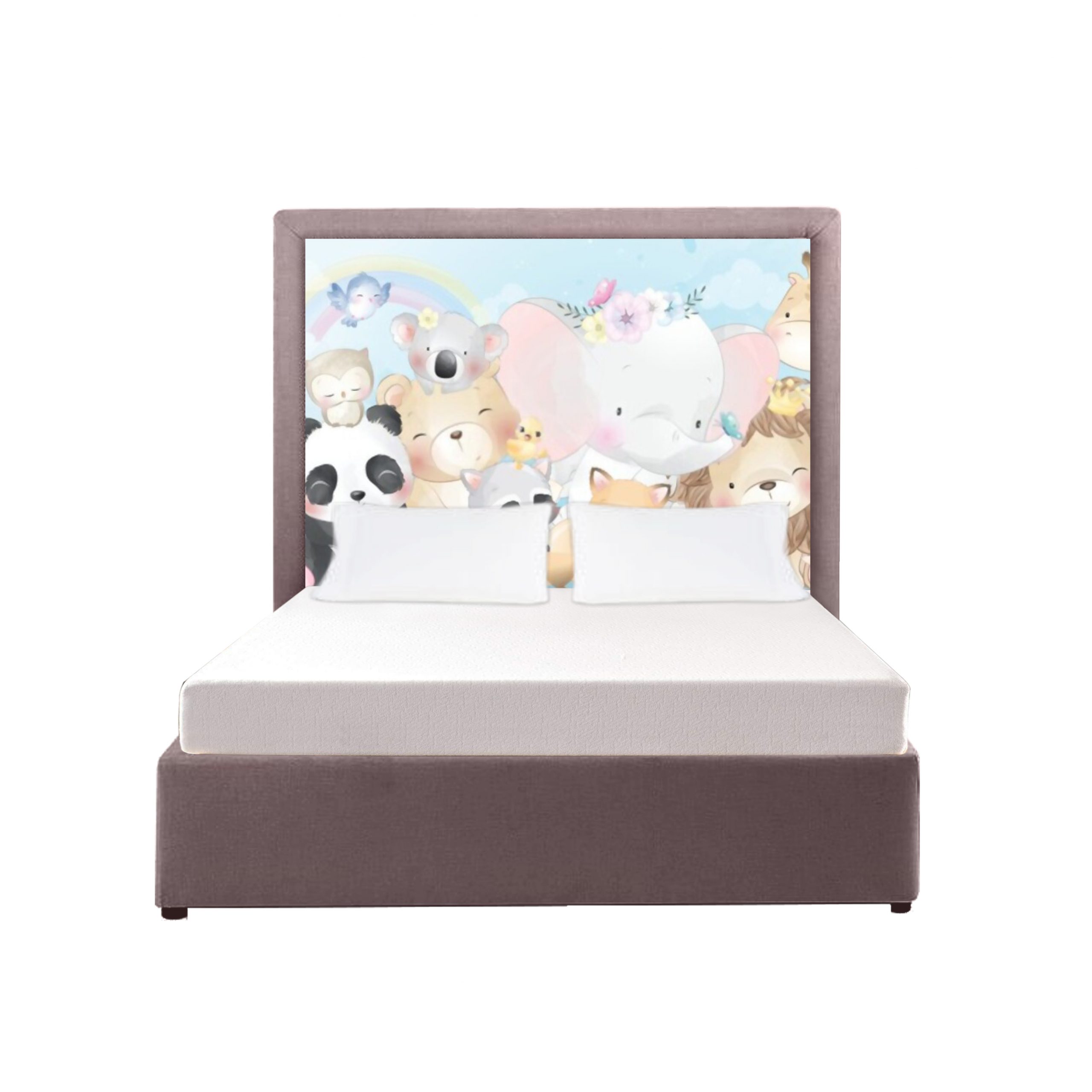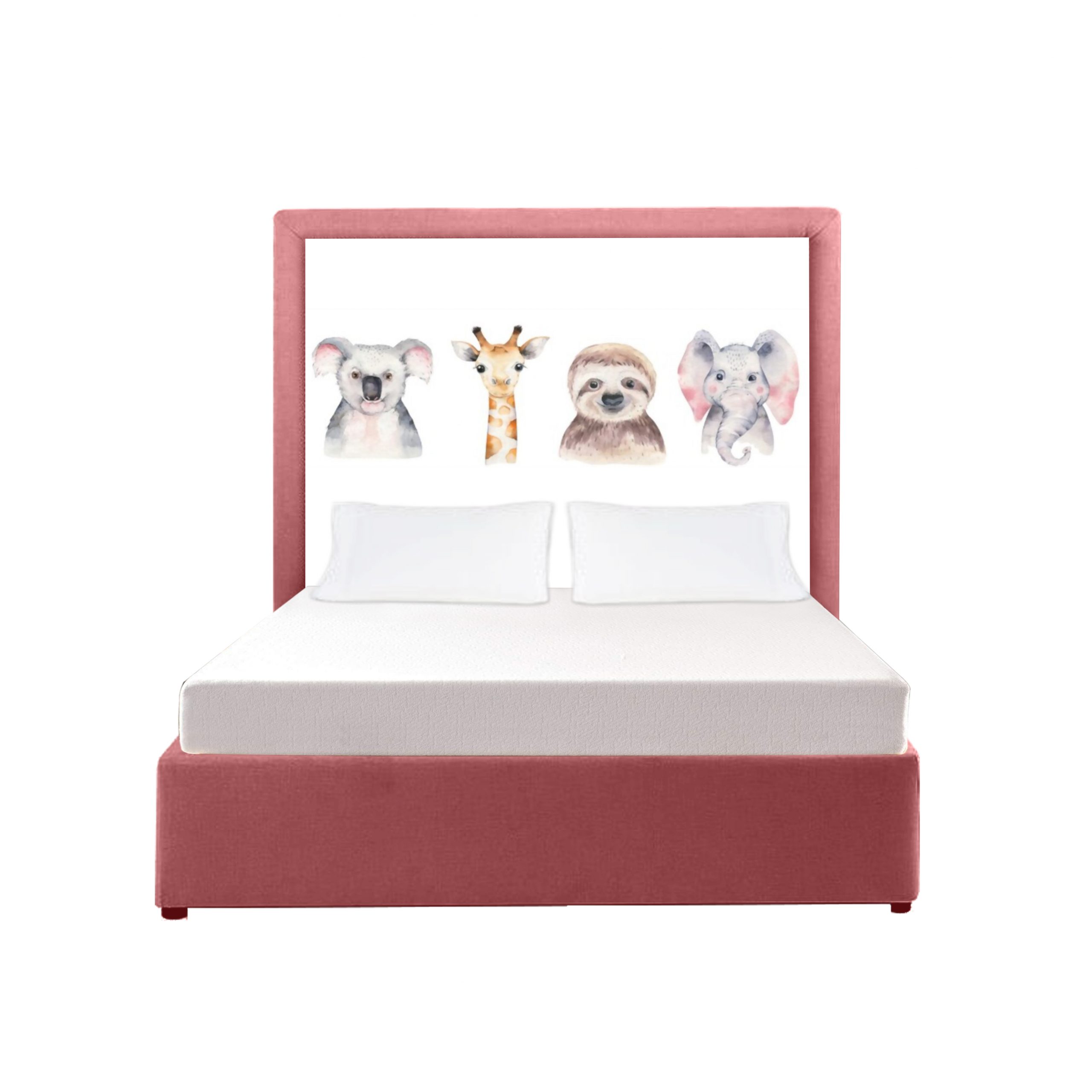This headboard brings the magic of animals to your room! The bed and base are two separate pieces. The headboard can be purchased on its own, or with a matching bed base, or with a matching base cover to cover your current bed base. Extra length at special request.